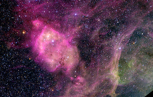 Turbulent region around the ring-shaped nebula DEM L 299 in the Large Magellanic Cloud, (LMC) a satellite galaxy of the Milky Way system. Hydrogen gas around the hot, young, massive stars is ionized by their ultraviolet radiation and glows as it recombines. The same process illuminates the Orion Nebula, even though it is only a hundredth the size of the Tarantula.