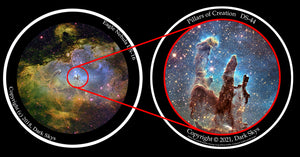 The Pillars of Creation is one of the most famous images taken by the Hubble Space Telescope. This image shows the elephant trunks of interstellar gas and dust in the Eagle Nebula, specifically the Serpens constellation, some 6,500–7,000 light years from Earth. They are so named because the gas and dust are in the process of creating new stars, while also being eroded by the light from nearby stars that have recently formed. The pillars are 4-5 light years tall while the Eagle Nebula is 70 by 55 light years across. This image is a composite of visible and infrared.