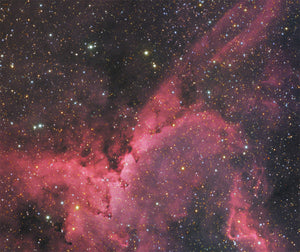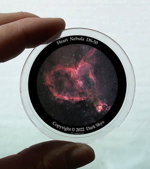 La Nebulosa del Corazón se encuentra a 7500 años luz de la Tierra y se encuentra en el Brazo de Perseo de la Galaxia , en la constelación de Casiopea . Fue descubierta por William Herschel en noviembre de 1787. Está compuesta de gases ionizados de oxígeno y azufre, responsables de los ricos colores que se aprecian en las imágenes de banda estrecha. La forma de la nebulosa se debe a los vientos estelares de las estrellas calientes de su núcleo. La nebulosa se extiende casi 2 grados en el cielo, cubriendo un área cuatro veces mayor que el diámetro de la luna llena.